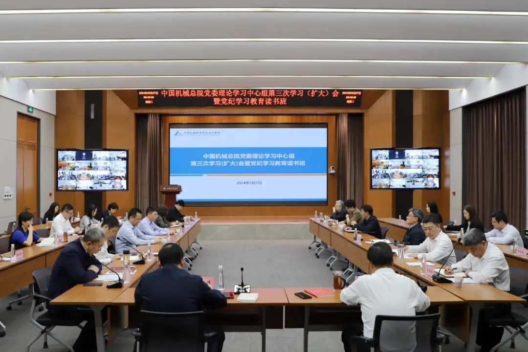 5月7日,中國機械總院召開黨委理論學習中心組2024年第三次學習(擴大)會暨黨紀學習教育讀書班,深入學習領會習近平總書記關于全面從嚴治黨、推進自我革命的重要論述,原原本本學習新修訂的《中國共產黨紀律處分條例》,推動集團黨委黨紀學習教育有力有序有效開展。集團黨委書記、董事長王德成主持會議并講話,帶頭交流學習心得體會。